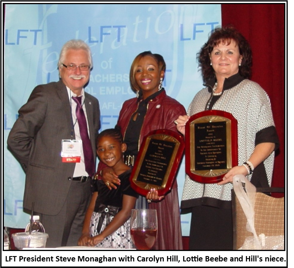(Lake Charles – November 23, 2015) Dr. Lottie Beebe and Carolyn Hill were named today as the Louisiana Federation of Teachers’ Friends of Education for 2015. The Friend of Education Award is the highest honor that the Louisiana Federation of Teachers bestows on non-members of the union. It is presented to individuals who have made an outstanding contribution to public education.